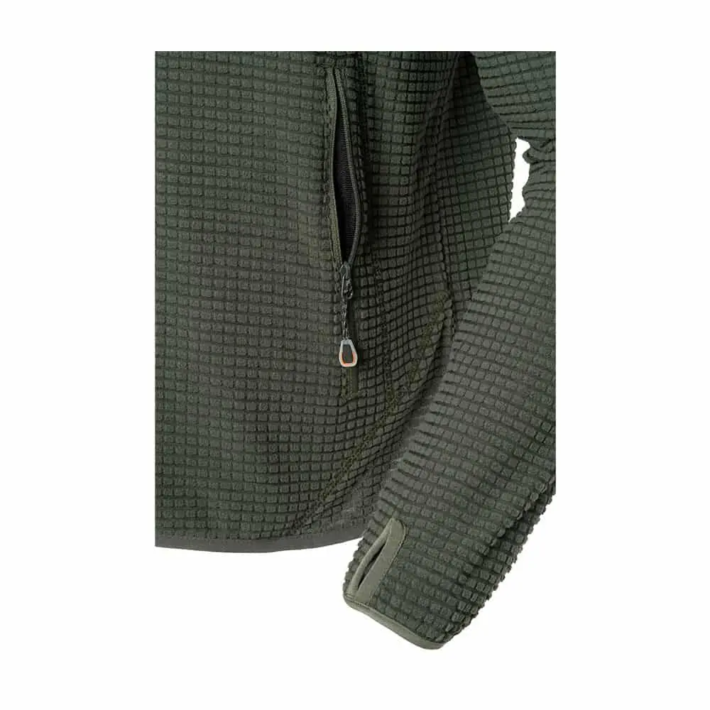 El tejido fleece con cortes segmentados tipo ripstop permite por una parte mayor tanspirabilidad y por la otra seguir manteniendo el aporte calórico al cuerpo.