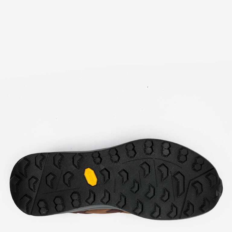 Un zapato de piel nobuck graba, membrana Gore-Tex impermeable y transpirable; suela de dos densidades con entresuela de phylon y patín Vibram® con compuesto Megagrip y Traction Lug que proporciona amortiguación y comodidad.