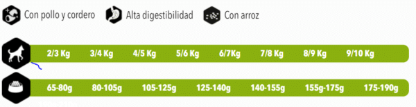 Composición: Proteína de carne deshidratada (cordero mín. 4%, pollo mín. 4%), Cereales (arroz mín 4%), Subproductos de origen vegetal (pulpa de remolacha mín. 2%), aceites y grasas (grasa de ave mín. 5%), Sustancias minerales.