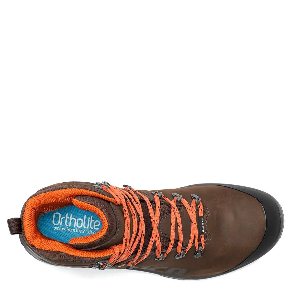 Adecuada para terrenos poco accidentados. Bota de piel nobuck, refuerzo en puntera, membrana Gore-Tex impermeable y transpirable; y con piso bidensidad poliuretano que ofrece comodidad y amortiguación.