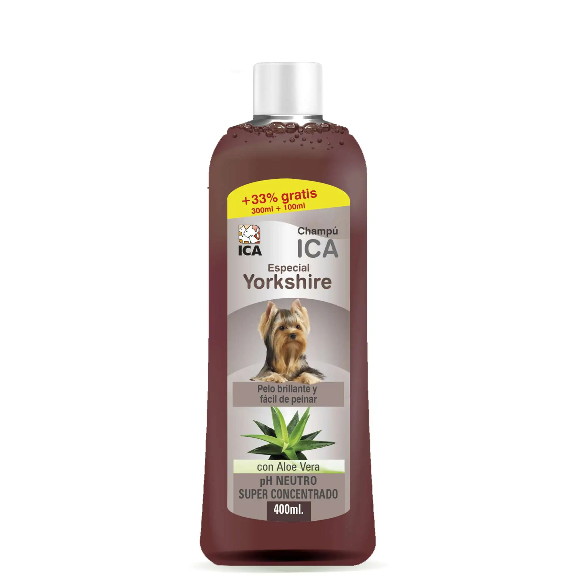 El champú ICA especial Yorkshire está especialmente formulado e indicado para mantener en óptimas condiciones la piel y el pelo característicos de esta raza, dejando un pelaje brillante y fácil de peinar. Este champú con fragancia a lavanda de pH neutro súper concentrado deja el pelo suave y limpio con una leve fragancia durante mayor tiempo.