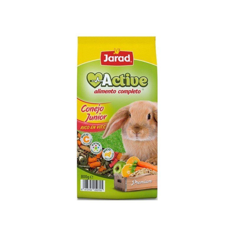 El alimento para conejos en edad temprana Jarad Conejo Junior es un alimento rico en vitamina C. Su saludable receta incluye una mezcla de frutas, semillas y cereales que aportan a tu pequeño roedor todo lo que necesita para crecer sano y fuerte. Este alimento para conejos