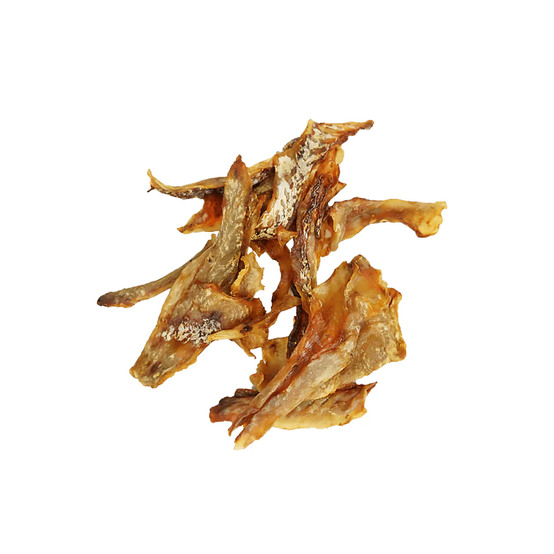 Deliciosa y crujiente piel de merluza deshidratada que, con su aroma a pescado, es un snack hipoalergénico alternativo perfecto para los peludos más delicados o aquellos a los que les encanta el pescado.