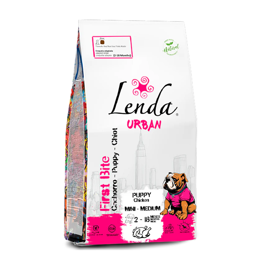 Una receta natural preparada para asegurar un crecimiento óptimo y constante de los cachorros de todas las razas. Lenda Urban First Bite es un alimento irresistible resultante de un poderoso combo de carnes de pollo, cerdo y vacuno (40%).