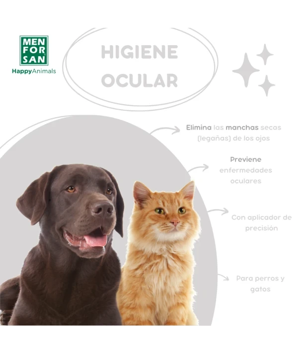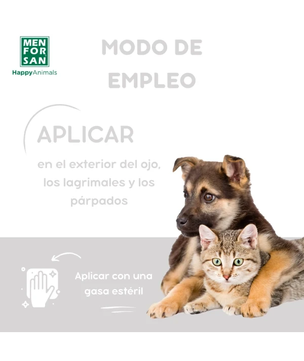 Producto natural especial para quitar manchas secas (legañas) en los ojos producidas por secreciones lagrimales en perros y gatos.