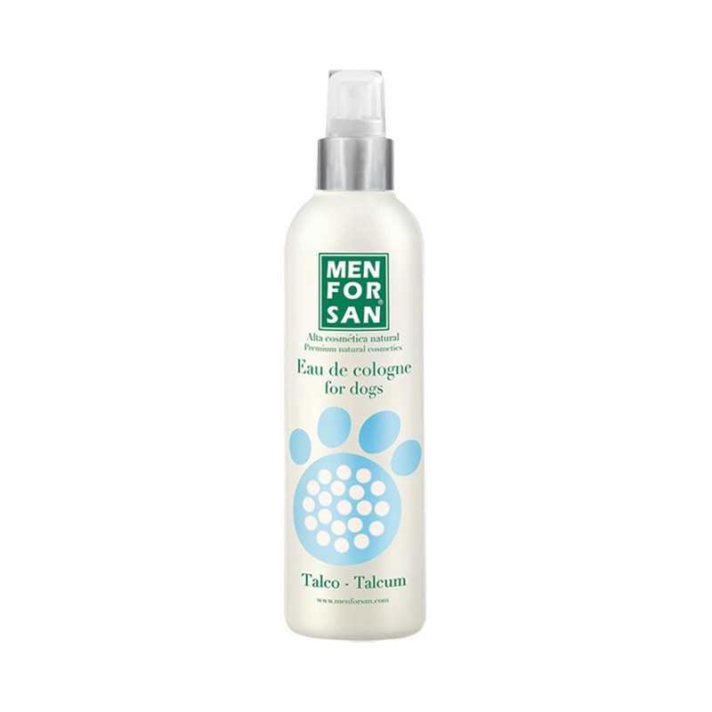 Agua de colonia talco para perros con fragancias frutales naturales especialmente creadas para proporcionar después del baño un olor fresco y un intenso efecto desodorante muy agradable respetando la piel y las propiedades olfativas del animal. No contienen alcohol y tienen ph neutro, careciendo de efectos irritantes y evitando que el perro estornude después de su aplicación.