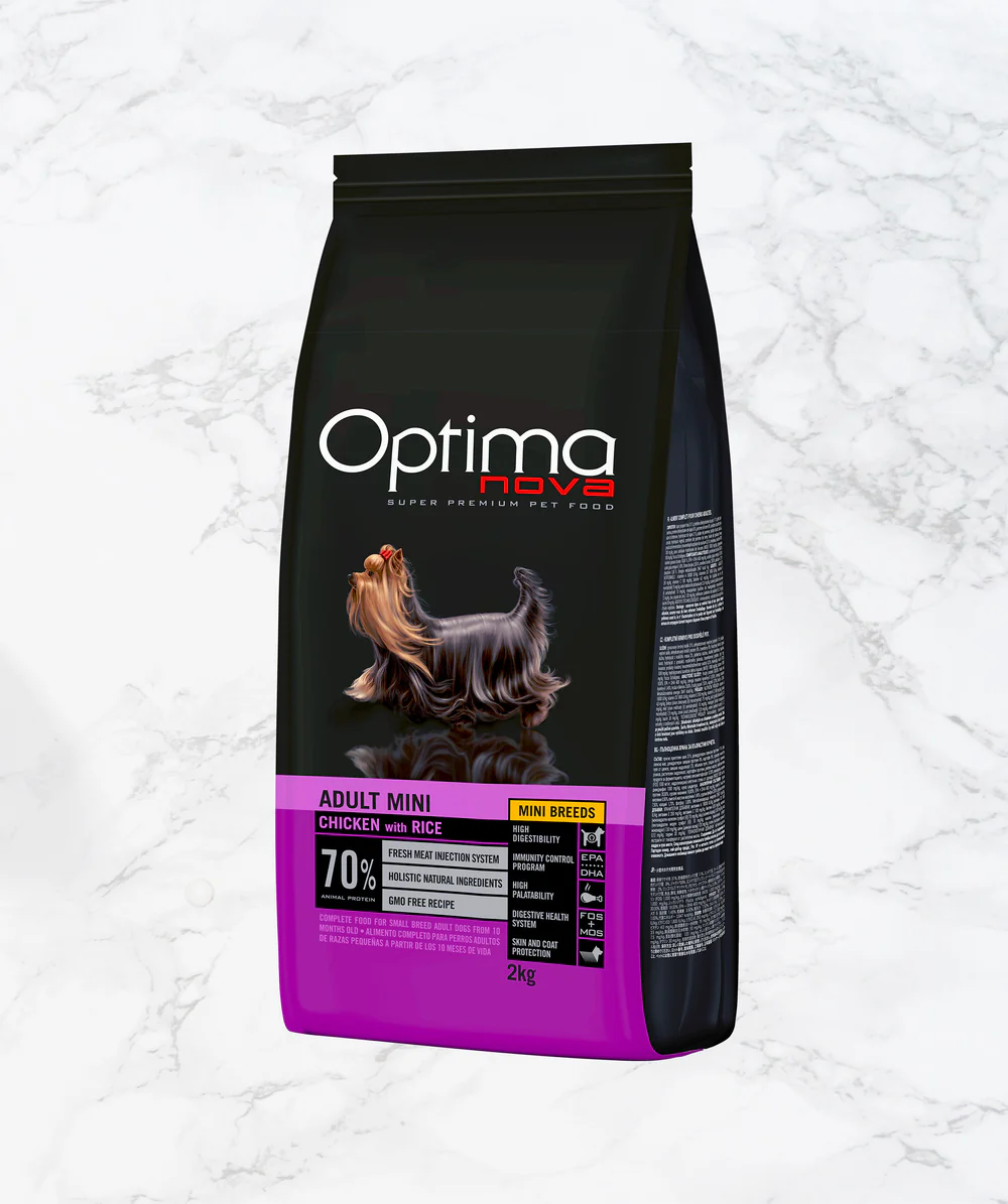 A partir de los 10 meses de vida, tu perro de raza pequeña alcanza la madurez y necesita una dieta equilibrada para esta nueva etapa. Optimanova Adult Mini Chicken & Rice le ayudará a mantener su peso ideal, gracias a un óptimo aporte de calorías y proteínas especialmente adaptado a sus características.