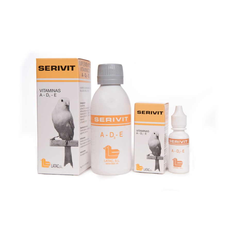 Mezclar de 4 a 6 gotas de SERIVIT en un bebedero con agua del grifo (50 ml) o 50 g. de pasta o pienso. Durante tres semanas antes del apareamiento y hasta el final de la puesta, alternando 7 días de tratamiento con otros 7 días de descanso.